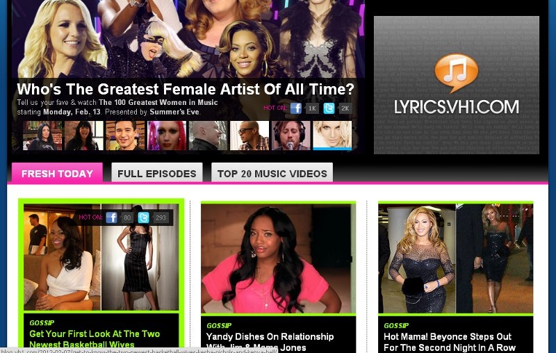 VH1 Home Page Redesign